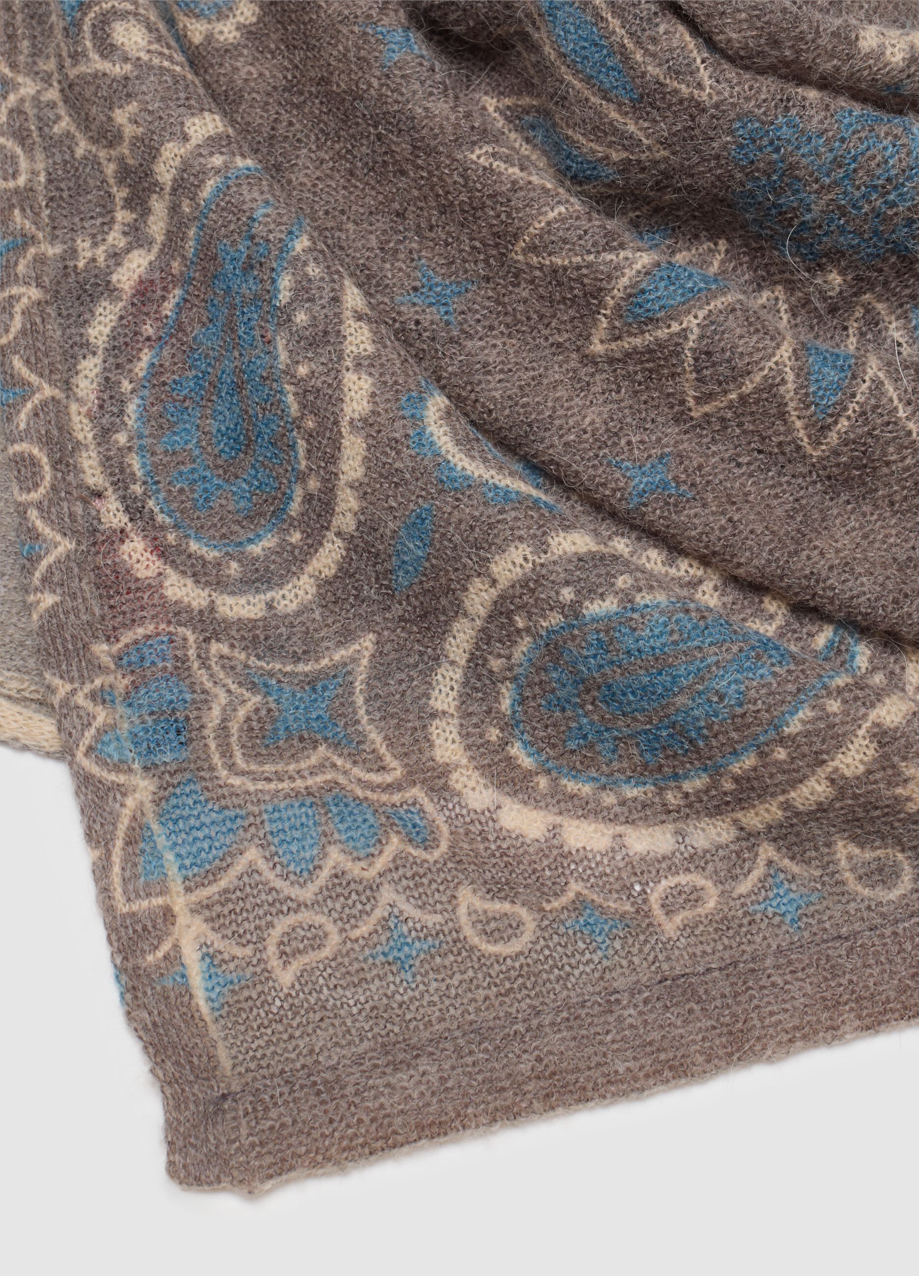 şal, kışlık kıyafetlere şıklık katmak için mükemmel, zarif ve çok yönlü bir aksesuardır. Alpaka ve yün karışımından üretilen şal, gri ve mavi tonlarında zarif bir paisley deseniyle dikkat çekiyor. Seçilen malzemelerin yumuşaklığı, rahatlık ve sıcaklık sağlayarak soğuk günlerle şık bir şekilde başa çıkmak için idealdir. Her kış gardırobunun olmazsa olmazı.
