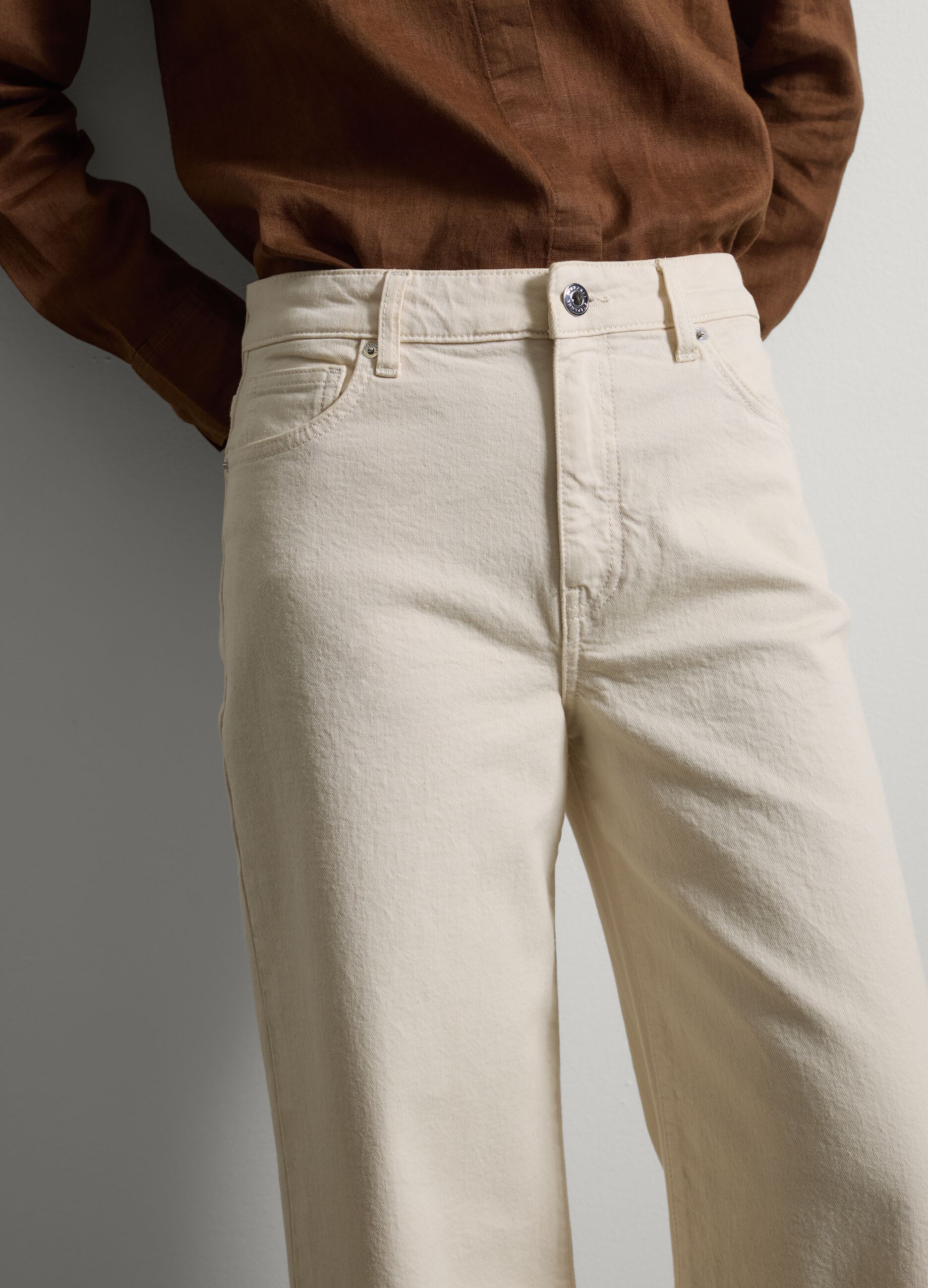 Bej renkli kot pantolon, esnek pamuktan üretilmiştir. Geniş paça kesimi ve elastik bel bandı sayesinde rahatlık ve hareket özgürlüğü sağlar. İlkbahar-yaz sezonu için ideal, çok yönlü ve pratik bir parçadır.