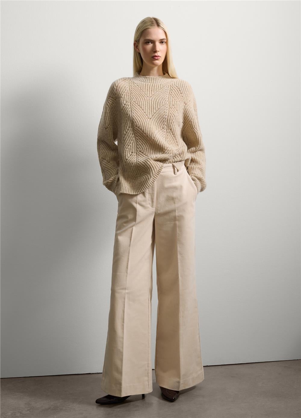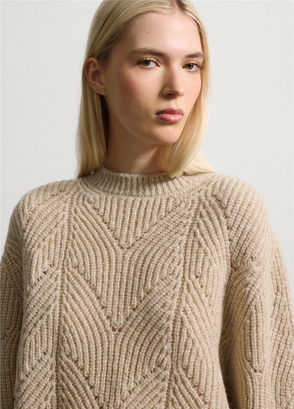 Stefanel, şık ve sofistike bir görünüm için çekici bir tasarıma sahip bu bej kazağı sunuyor. Saf yün ve metalik elyaftan üretilen bu kazak, gardırobunuza lüks bir dokunuş katıyor. Yuvarlak yakası ve uzun kollarıyla sıcaklık ve konfor sunuyor. Soğuk günlerle şık bir şekilde başa çıkmak için mükemmel olan bu kazak, çeşitli kombinasyonlara ve durumlara kolayca uyum sağlıyor.