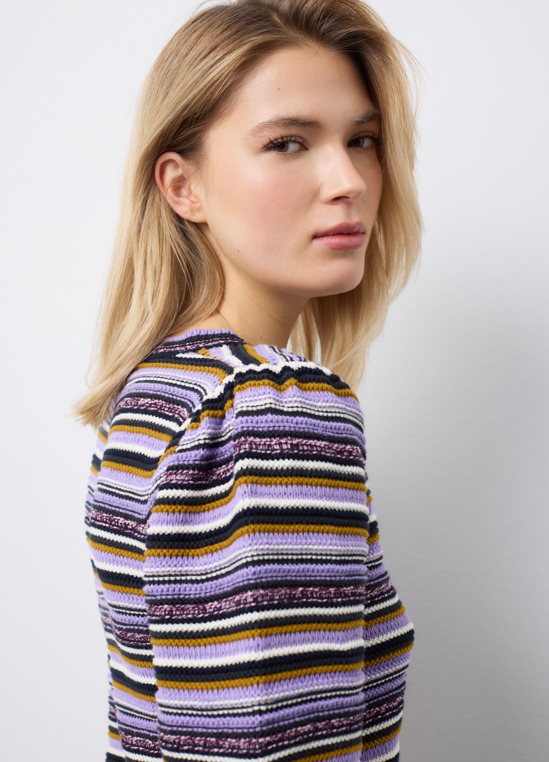 Çok renkli çizgili jarse, rahatlık ve ferahlık sağlamak için saf pamuktan üretilmiş, canlı ve çok yönlü bir parçadır. Kısa kollu ve yuvarlak yakalı bu model, ilkbahar-yaz ayları için mükemmeldir. Normal kesimli bu model, kot pantolon veya kumaş pantolonlarla kolayca kombinlenebilir ve rahat ve şık bir görünüm için idealdir. Bu eşsiz parçayla kıyafetlerinize renk katın.