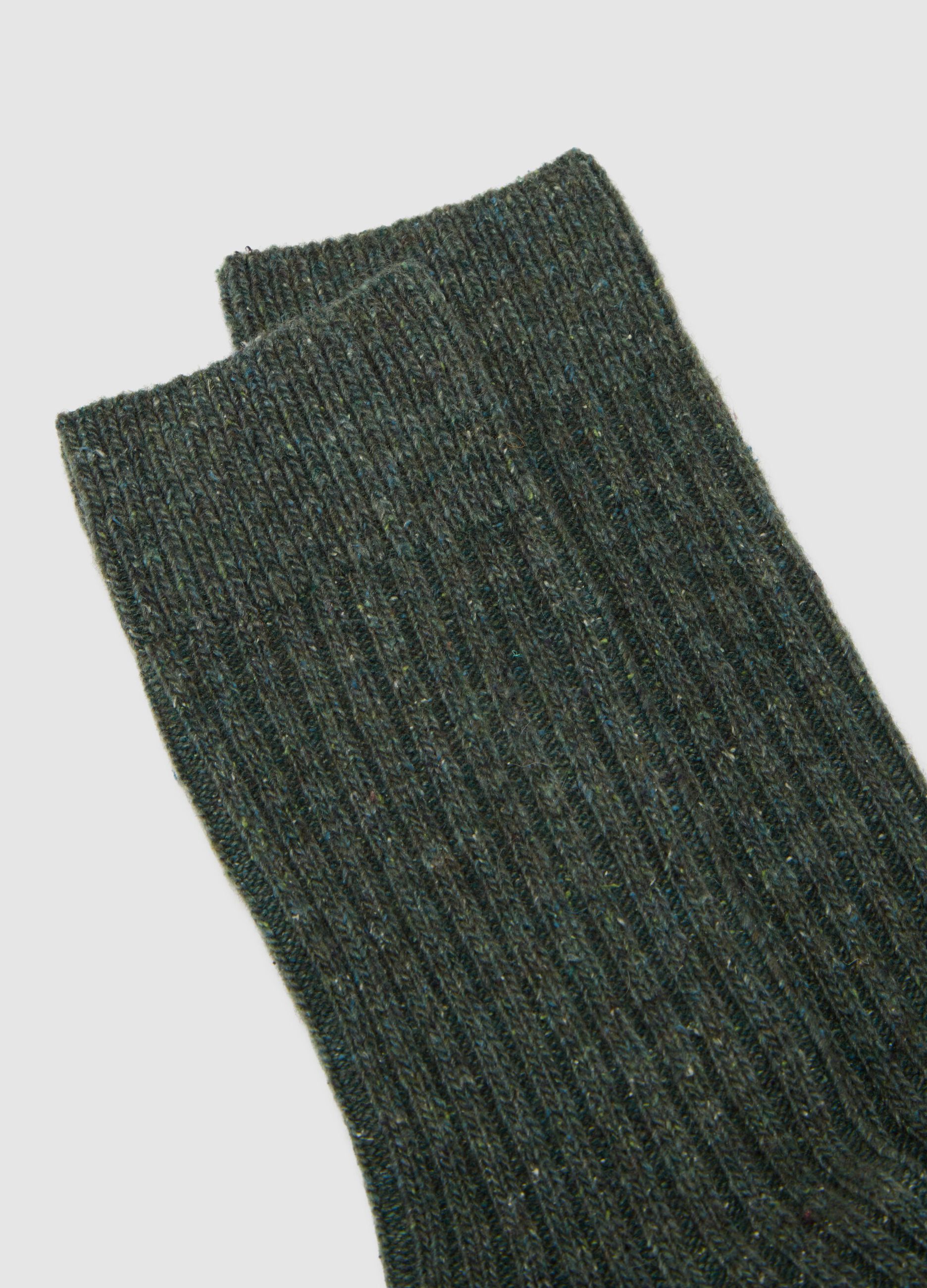 çoraplar, soğuk mevsim için mükemmel olan yün karışımından yapılmıştır. Kahverengi detaylarla zenginleştirilmiş çok renkli tasarımı, sonbahar ve kış kıyafetlerinize canlılık katıyor. Fitilli örgü, sıcaklık ve yumuşaklık sağlayarak her durum için ideal hale getiriyor.