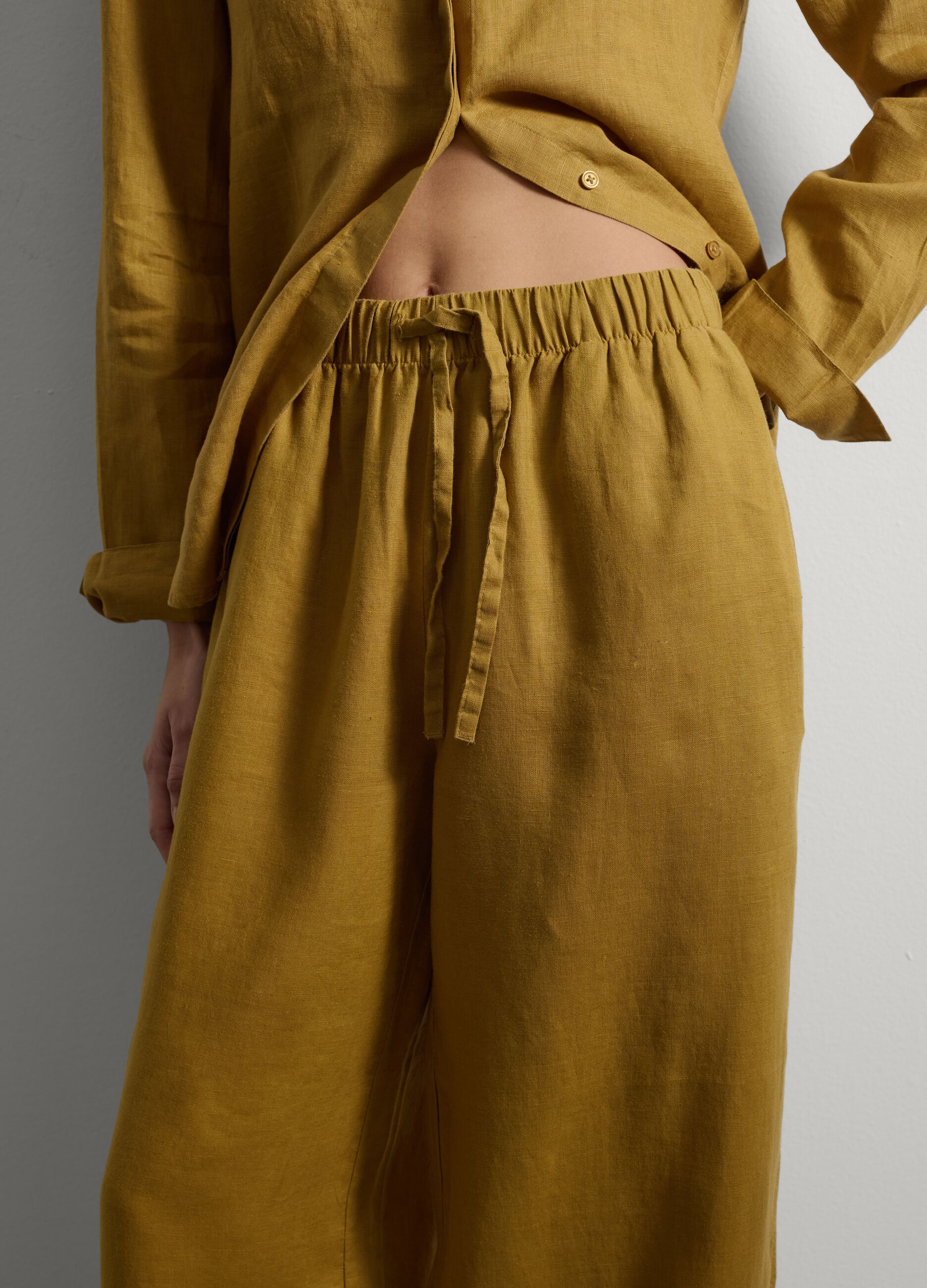Sarı jogger pantolon, yaz mevsimi için mükemmel olan saf ketenden üretilmiştir. Lastikli bel ve geniş paça kesimiyle hareket özgürlüğü ve konfor sunar. Şık ve modern kombinler oluşturmak için ideal olan bu pantolon, zarif ve pratik bir görünüm arayan her kadın için olmazsa olmazdır.