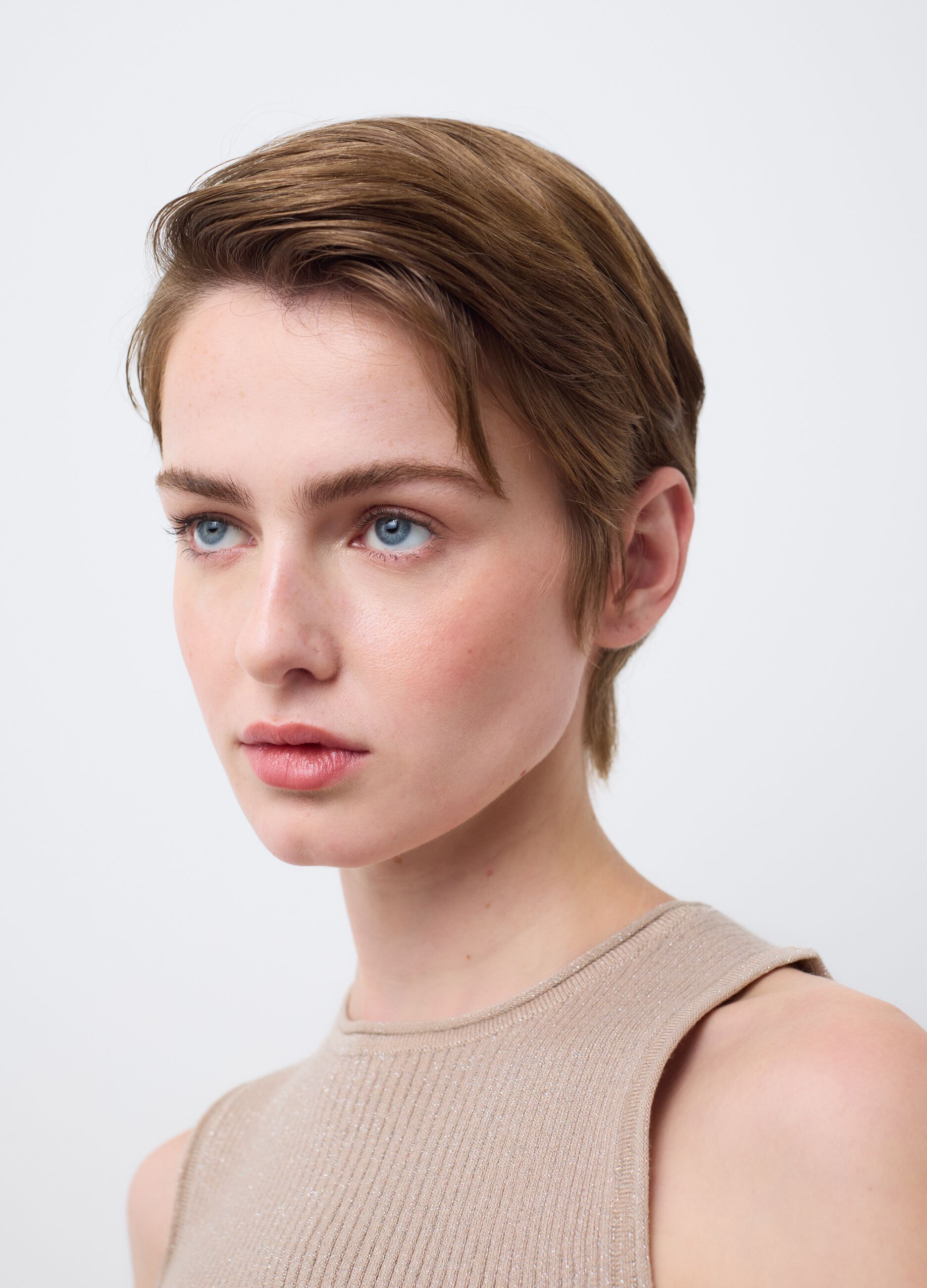Bej renkli askılı bluz, dikkat çeken ışıltılı bir etki yaratan viskoz karışımından üretilmiştir. Dar kesim tasarımı silüeti vurgulayarak yaz için ideal ve her durum için mükemmel hale getirir. Rahat ve çok yönlü olan bu askılı bluz, tek bir giyside stil ve konfor arayanlar için olmazsa olmaz bir parçadır.