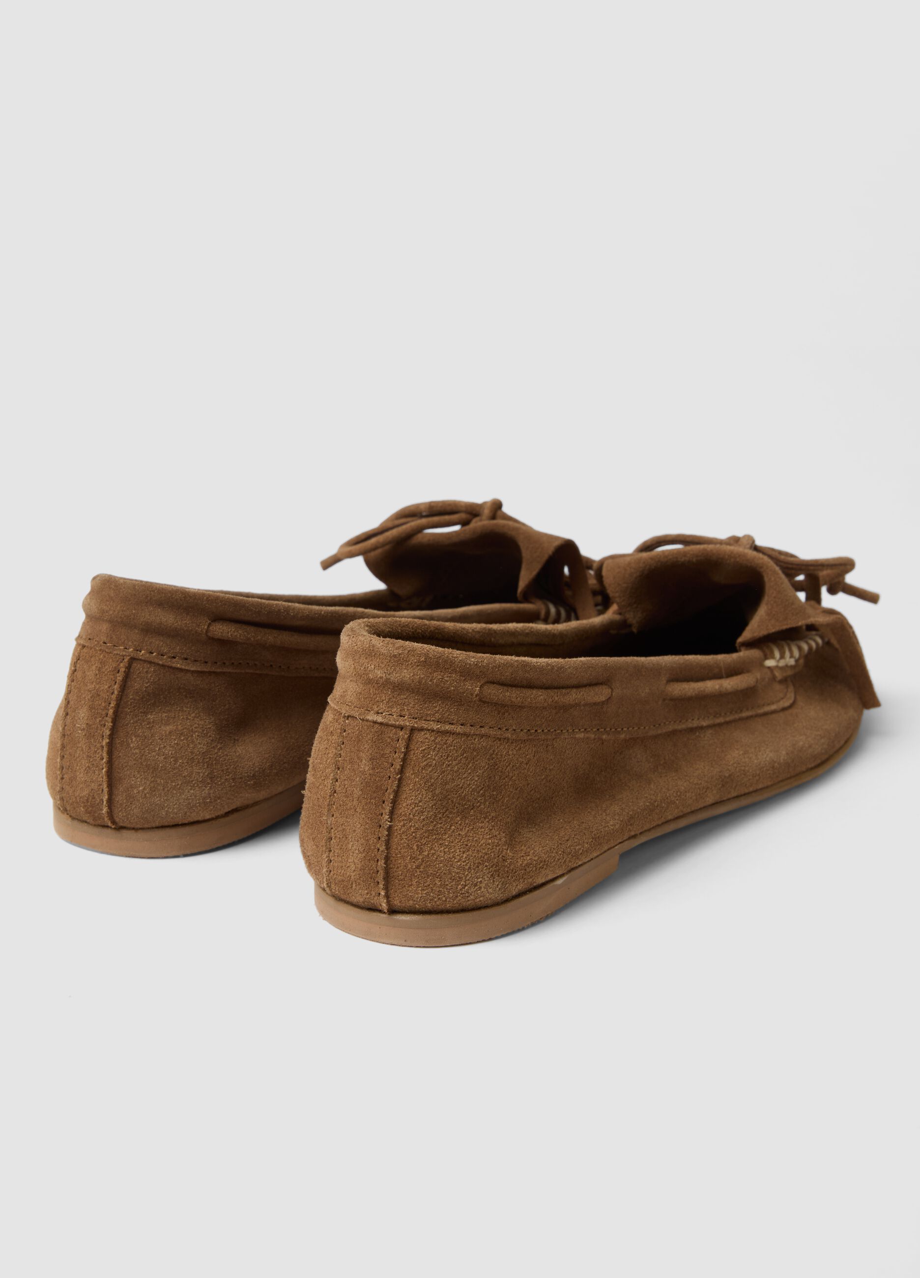 Kahverengi mokasenler, şehir hayatında rahatlık ve şıklık arayan kadınlar için harika bir seçimdir. Hakiki süet deriden üretilmiş ve iç astarı bulunmayan bu ayakkabılar, ön kısmında zarif püsküller ve kenarlarında örgülü detaylara sahiptir. Dayanıklı ve esnek tabanı, onları ilkbahar ve yaz mevsimlerinde günlük kullanım için ideal kılar.