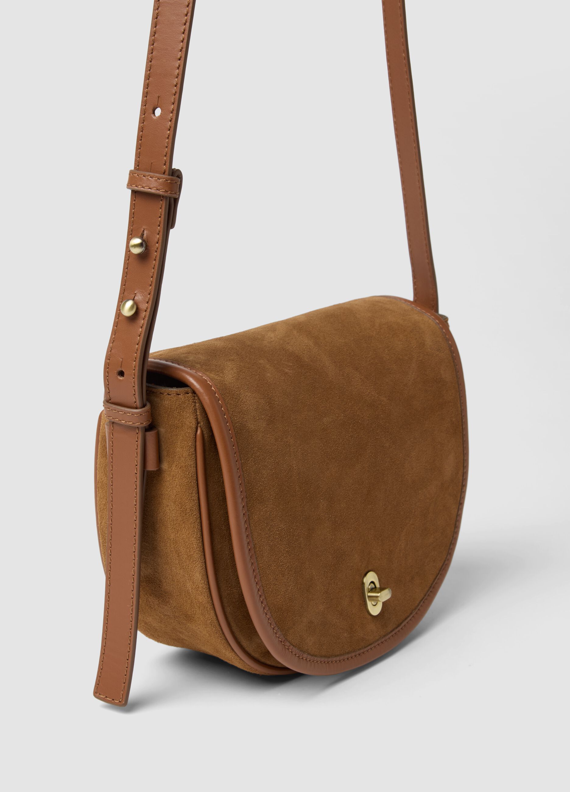 Kahverengi hakiki deri çapraz askılı çanta, kadınlar için ideal, şık ve işlevsel bir aksesuardır. Yüksek kaliteli malzemelerle üretilen çanta, temel eşyaların rahatça taşınmasını sağlayan kompakt bir tasarıma sahiptir. Tokalı kapatma sistemi güvenliği sağlarken, kahverengi rengi ve malzemenin dayanıklılığı onu çok yönlü ve çeşitli durumlar için uygun hale getirir.