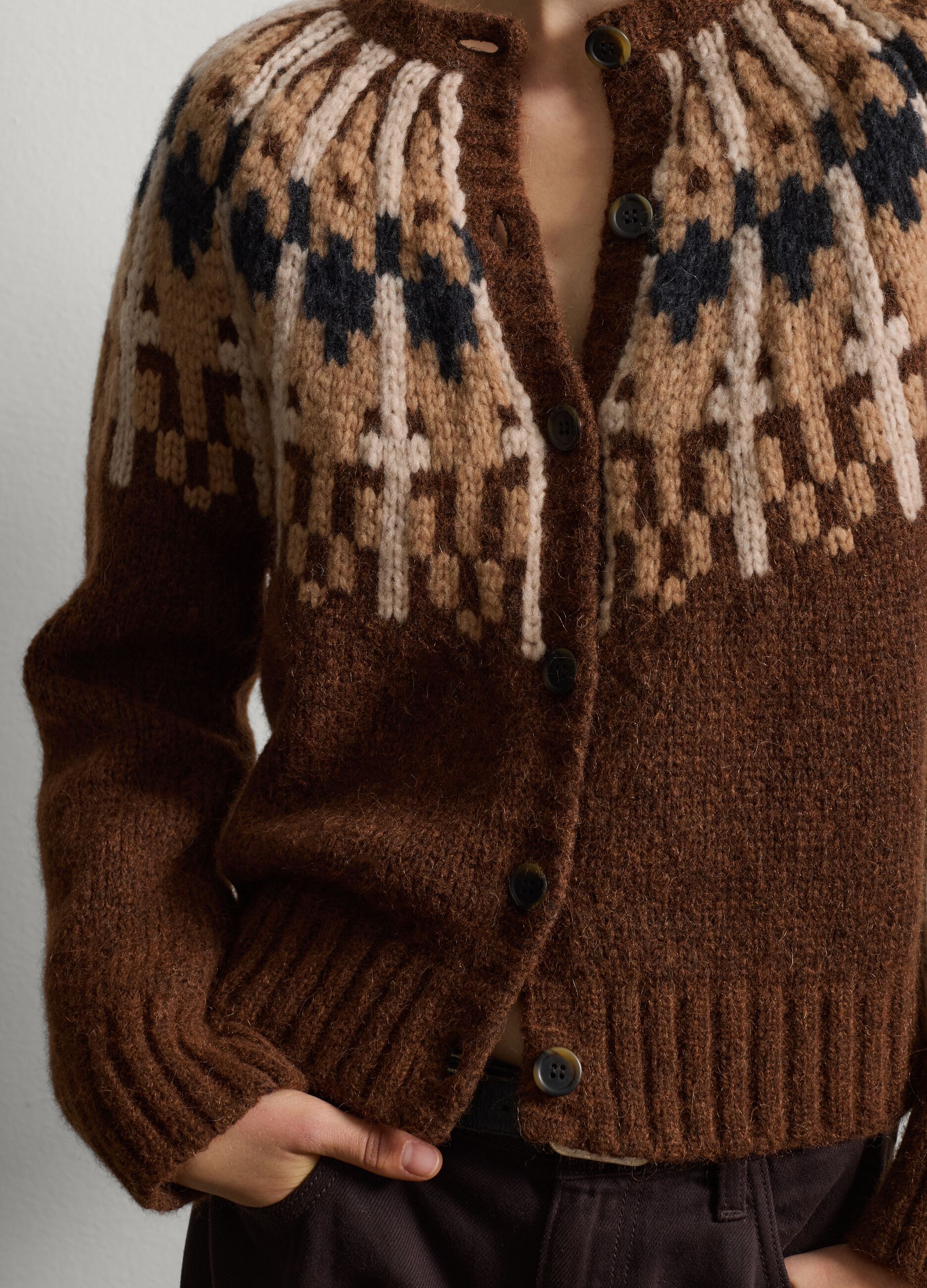 Stefanel'in kahverengi hırkası, soğuk mevsim için olmazsa olmaz bir parça. Yün ve alpaka karışımından üretilen bu hırka, örgü tasarımıyla sıcaklık ve konfor sunuyor. Normal kesimi ve uzun kollarıyla, rahat ve şık görünümler yaratmak için ideal. Yuvarlak yakası ve özenle işlenmiş deseni ise şıklık ve özgünlük katıyor.