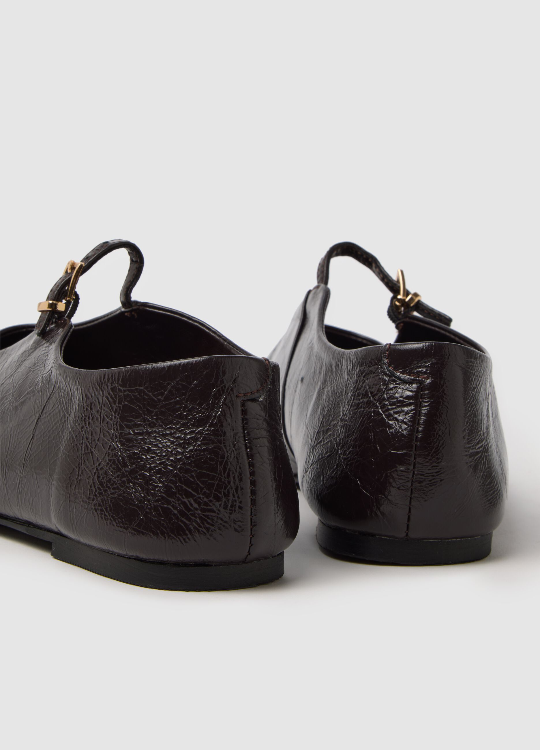 Babetler, her duruma uygun, şık ve çok yönlü bir aksesuar olan kahverengi hakiki deriden üretilmiştir. Minimalist tasarım, altın rengi kayış ve ayarlanabilir toka ile zenginleştirilerek zarif bir sofistike dokunuş katılmıştır. Bu babetler, her adımda konfor ve stil sunarak gündüzden geceye kıyafetinizi tamamlamak için mükemmeldir.