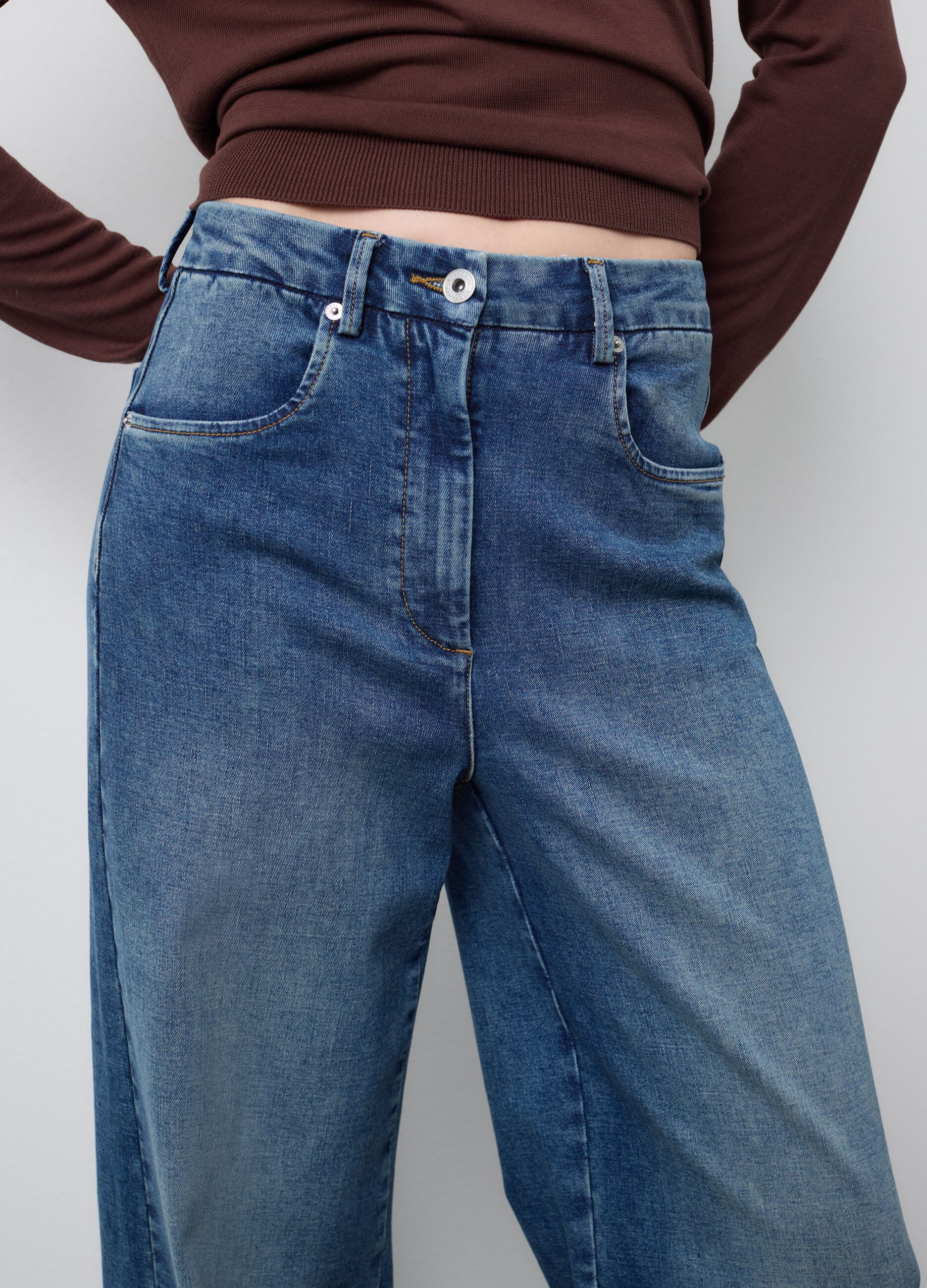 Mavi kot pantolon, esnek pamuktan üretilmiştir ve geniş paça kesimine ve normal bele sahiptir. Hareket özgürlüğü ve rahatlık sağlayan konforlu elastik bir bel bandına sahiptir. Her türlü gündelik etkinlik için mükemmel olan bu pantolon, günlük kullanım için pratikliği ve stili bir araya getiriyor.
