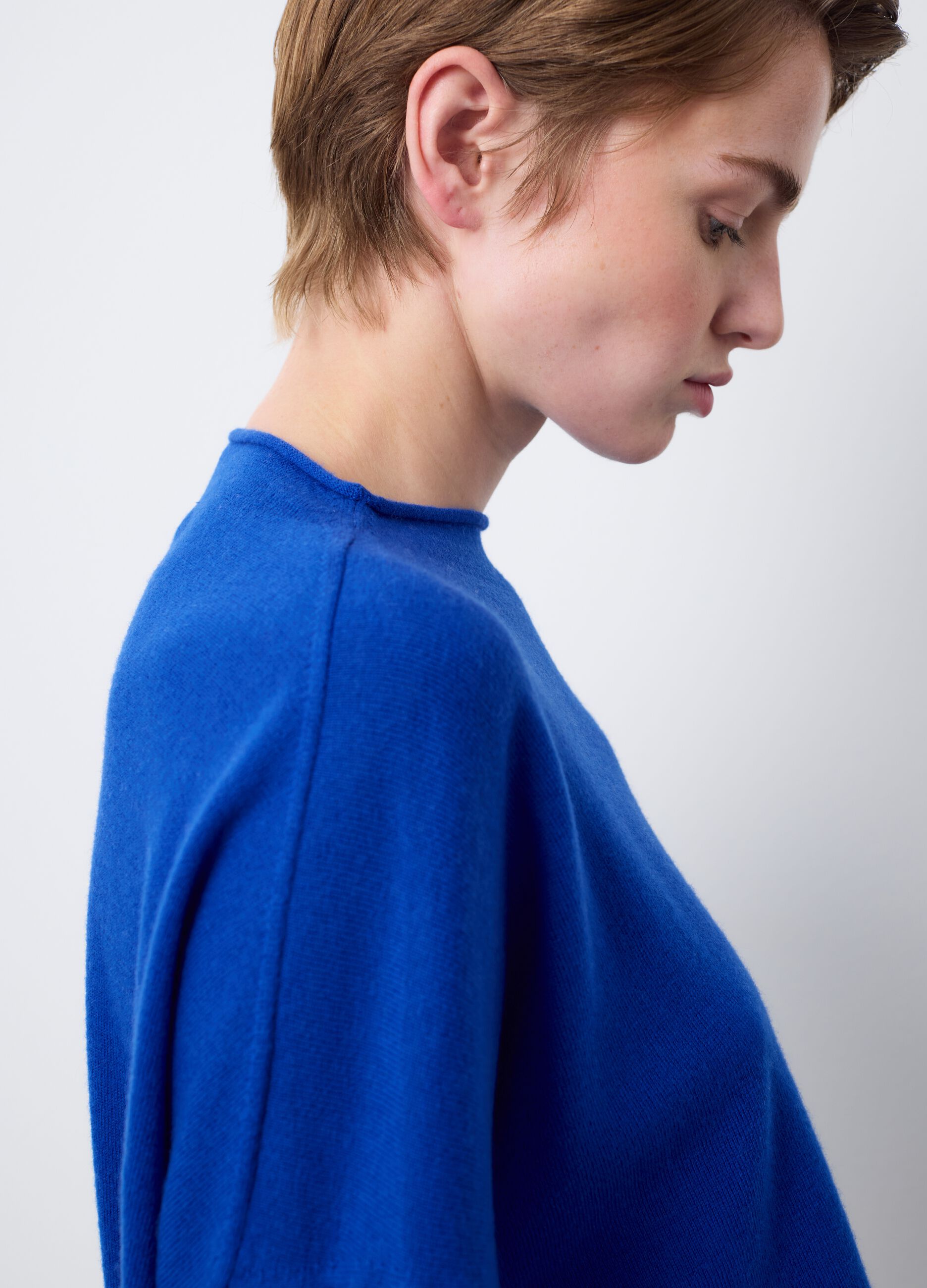 Mavi kazak, her kadının sahip olması gereken bir parça. Saf yünden üretilen bu kazak, serin bahar ve yaz günleri için mükemmel olan sıcaklık ve yumuşaklık sağlar. Bol kesimi rahatlık ve çok yönlülük sunarken, uzun kolları ve yuvarlak yakası çeşitli stillerle kolayca uyum sağlar. Gardırobunuzu şıklık ve pratiklik dokunuşuyla zenginleştirmek için mutlaka sahip olmanız gereken bir parça.