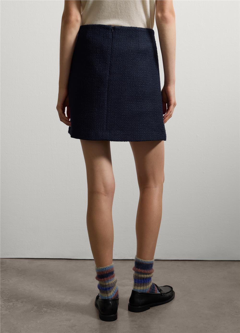 Zarif ve modern kesimli bu mavi etek, sofistike tarzı sevenler için mükemmeldir. Yün karışımından üretilen etek, soğuk aylarda konfor ve sıcaklık sağlar. Elastik beli sayesinde hem rahatlık hem de kullanışlılık sunar. Sonbahar/kış sezonunda günlük şık kombinler için idealdir.