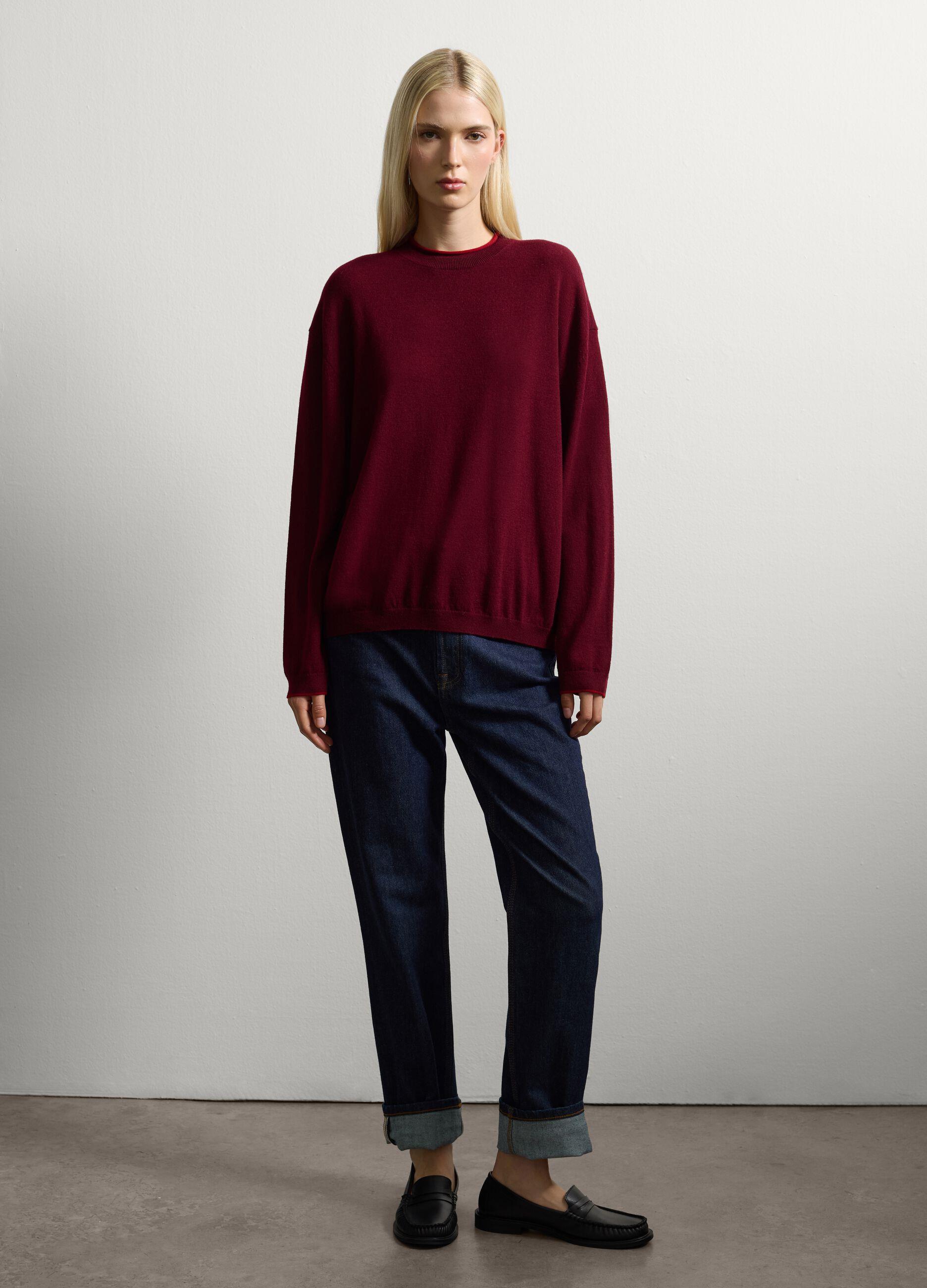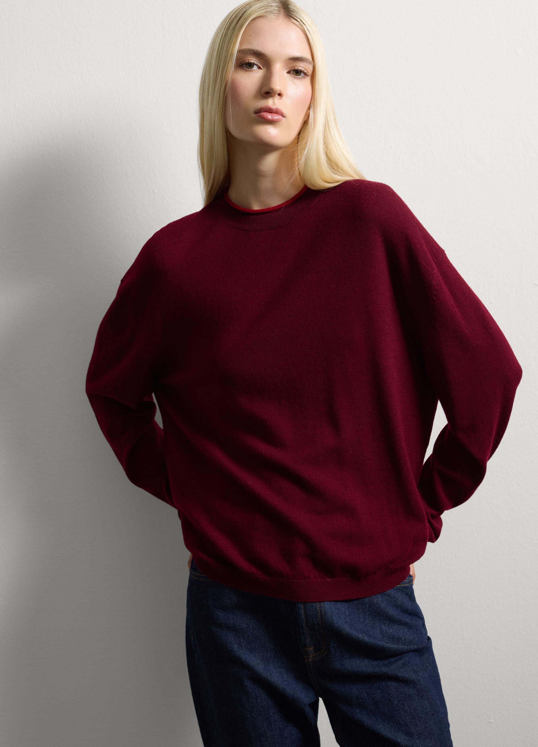 Bordo kazak, sonbahar/kış gardırobunun olmazsa olmaz parçalarından biri. Saf yünden üretilen bu kazak, serin günlerde sıcak ve rahat bir konfor sunuyor. Bol kesimli tasarımı, yuvarlak yakası ve uzun kollarıyla hem günlük hem de şık görünümler yaratmak için ideal. Farklı kıyafetlerle kolayca kombinlenebilen bu kazak, her durum için olmazsa olmaz bir parça.