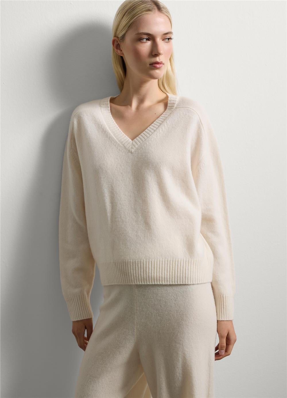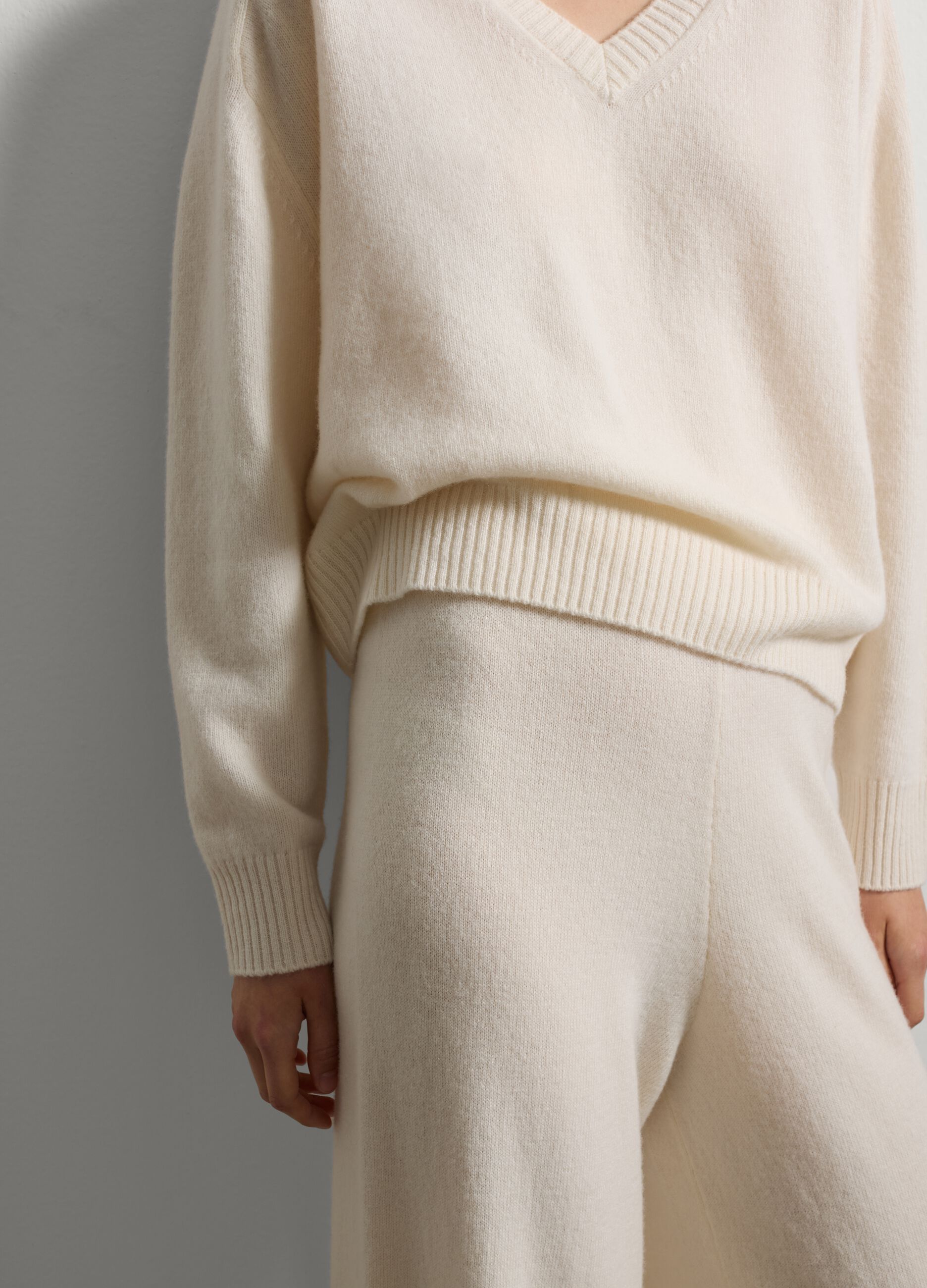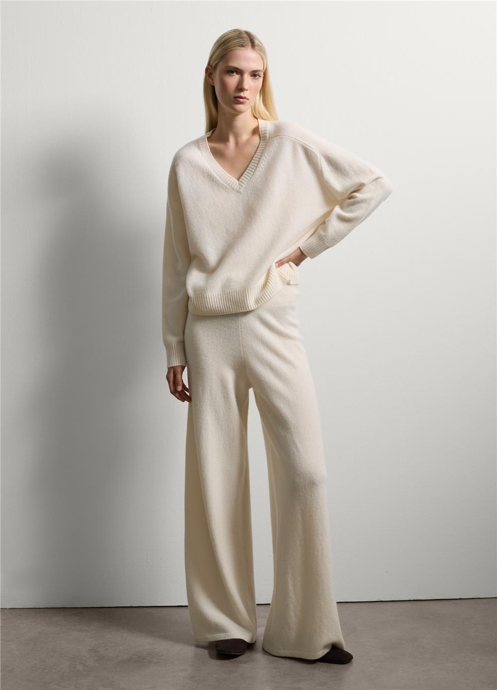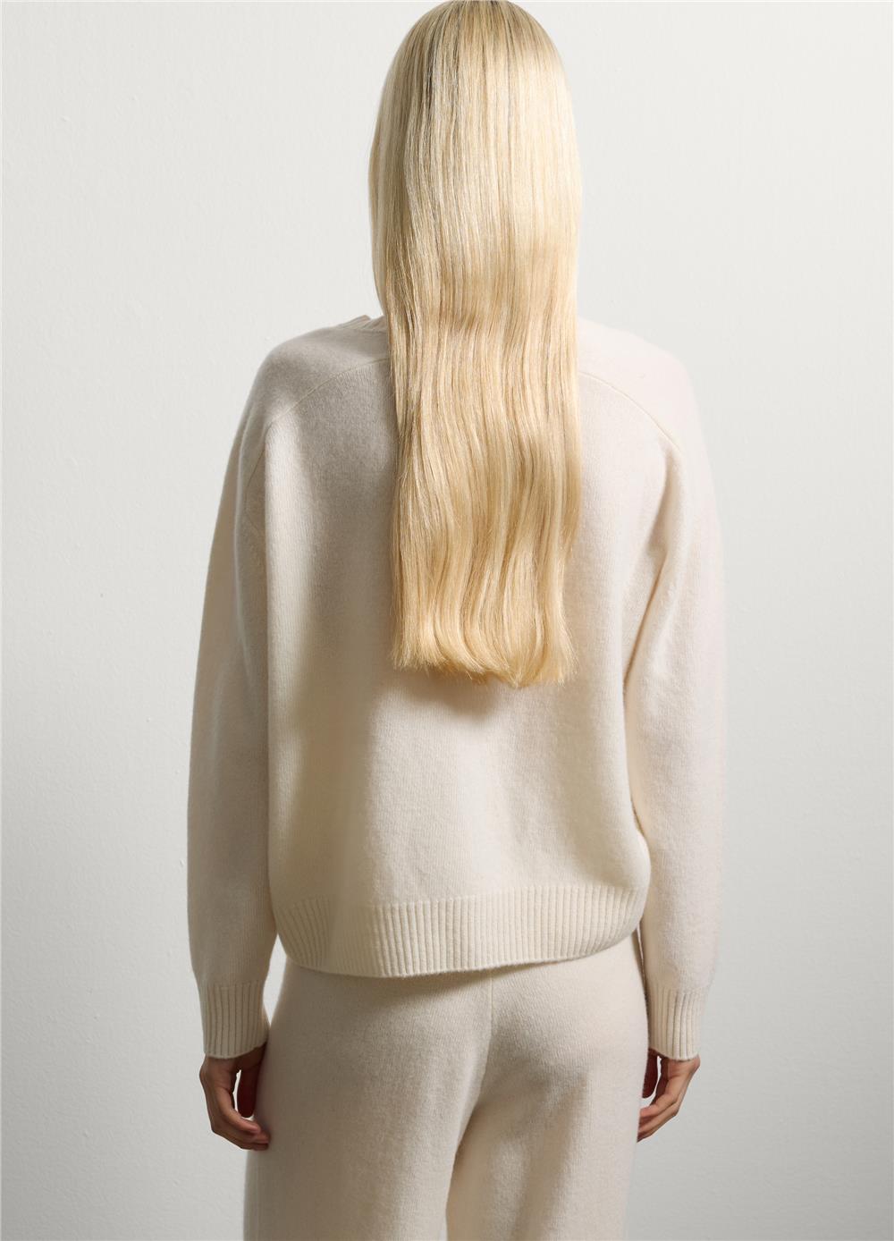 Soğuk mevsimlerle şık ve rahat bir şekilde başa çıkmak için mükemmel olan beyaz, saf yün kazağı keşfedin. Jersey örgü kumaşı sıcak ve rahat bir uyum sağlar. Bol kesim ve yuvarlak yaka, rahat ve şık bir görünüm arayan herkes için idealdir. Uzun kolları soğuğa karşı ekstra koruma sağlayarak onu çok yönlü ve sofistike bir ürün haline getirir.
