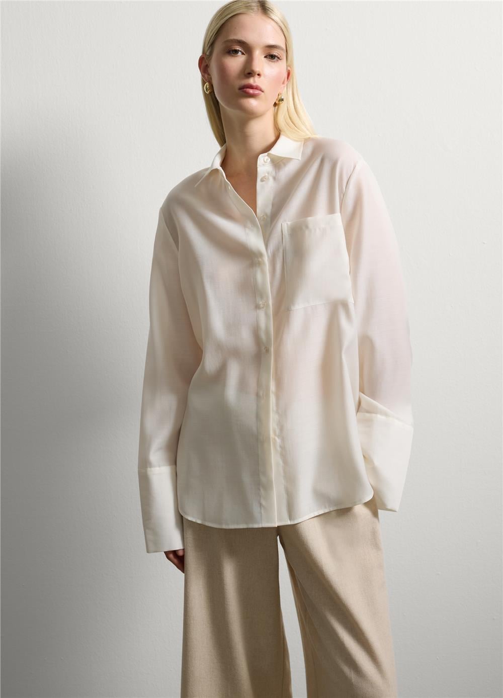 Beyaz gömlek, her türlü kombin ve her ortam için ideal bir parçadır. Yumuşak dokusu ve regular kalıbı sayesinde gün boyu konforlu bir kullanım sunar. Klasik yaka ve düğme kapamalı tasarımı, kusursuz ve düzenli bir görünüm elde etmenizi sağlar. Hem günlük hem de daha resmi stiller için gardırobunuzda mutlaka bulunması gereken zamansız bir üründür.