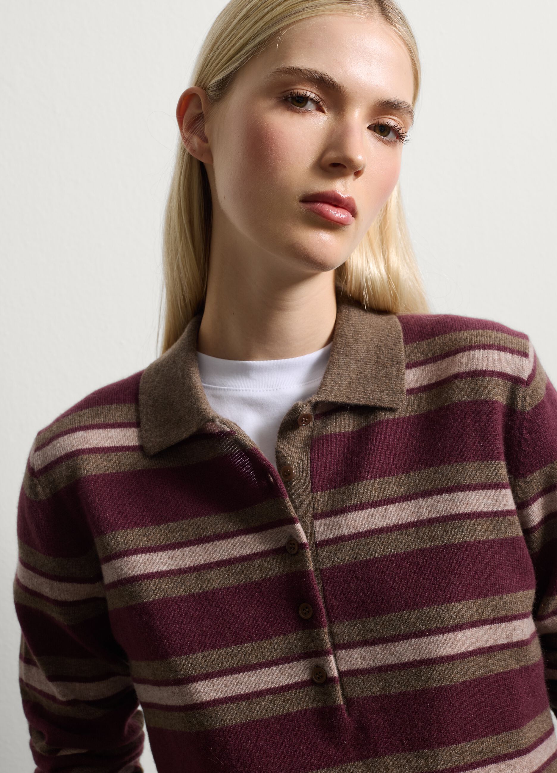 Kahverengi çizgili kazak, rahatlık ve stil arayan herkes için vazgeçilmez bir parça. Saf kaşmirden üretilen bu kazak, sonbahar/kış mevsimi için mükemmel olan yumuşak ve sıcak bir his sunuyor. Yuvarlak yakalı ve uzun kollu bol kesimi, rahat ve konforlu bir kullanım sağlıyor. Bu çok renkli kazak, çeşitli kıyafetlerle kolayca kombinlenebilir ve her durum için harika bir seçimdir.