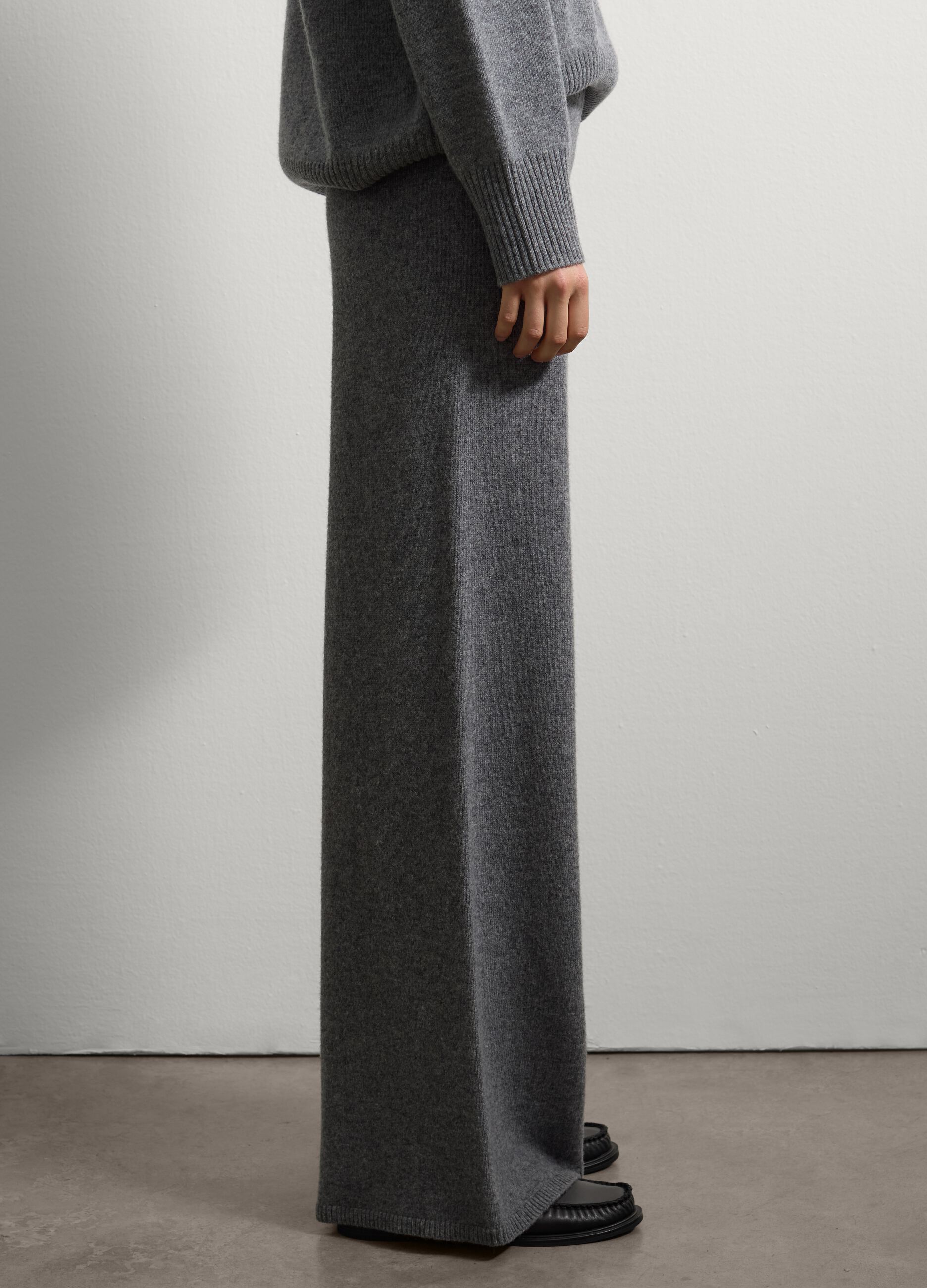 Gri pantolon, soğuk mevsimlerde sıcaklık ve konfor sağlamak için saf yünden üretilmiştir. Normal kesim ve rahat tasarımı, kış gardırobunuzda sofistike bir görünüm için kazak ve ceketlerle kombinlemek için ideal, zarif bir silüet sunar.