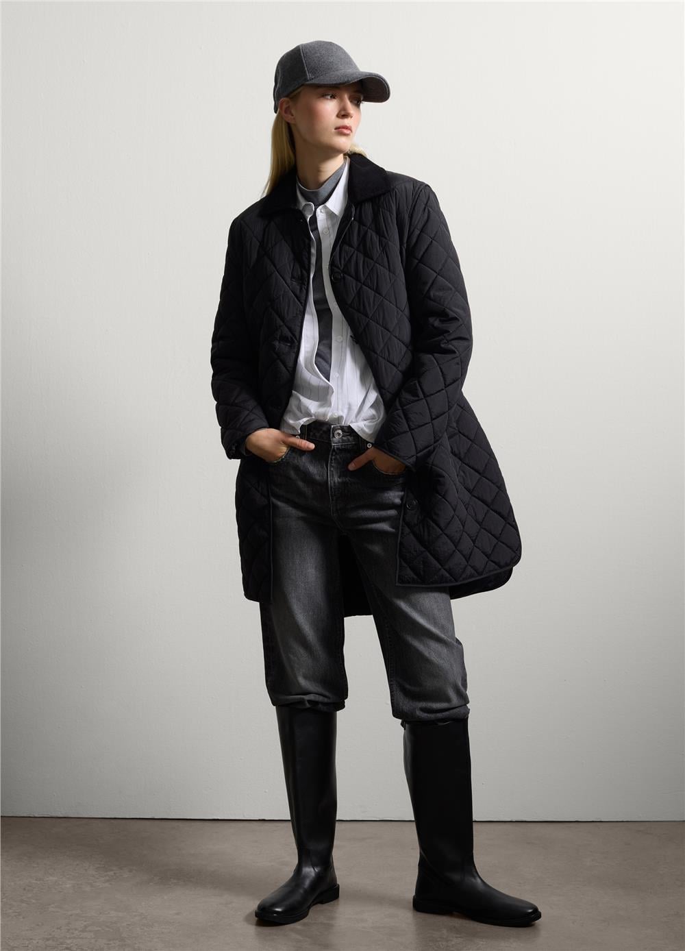 Siyah Husky ceketi, düğmesiz fermuar kapatma özelliğiyle şık ve modern bir görünüme sahip. Normal kesimi sayesinde çok yönlü ve çeşitli etkinlikler için ideal olan bu ceket, sonbahar ve kış gardırobunuza zarif bir dokunuş katıyor.