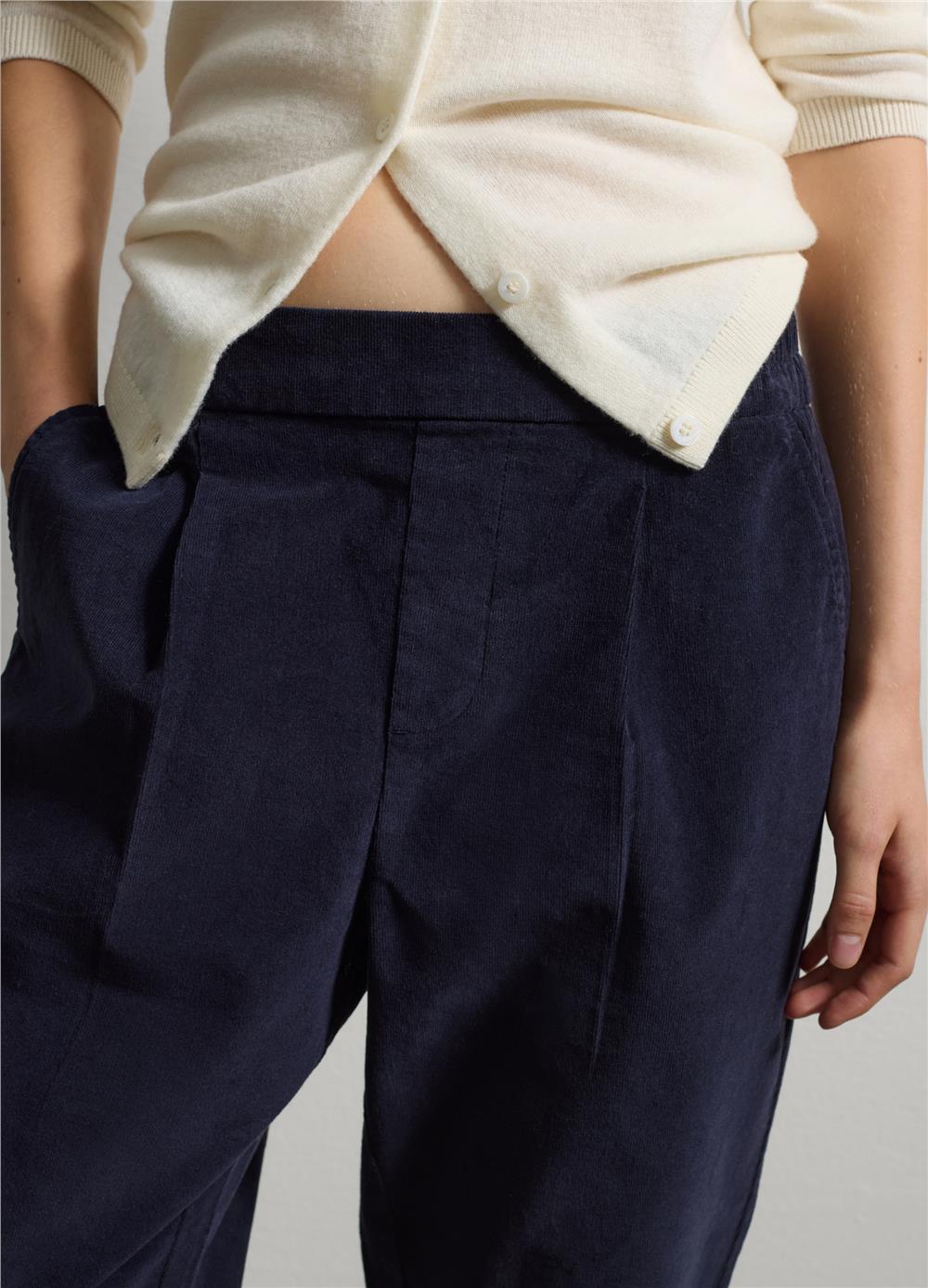 Stefanel'in bu mavi kadife pantolonu, geniş paça kesimi ve elastik beli olağanüstü konfor sunuyor. Esnek pamuktan üretilen bu pantolon, stil ve kullanışlılığı bir araya getirerek mevsim geçişlerinde giymek için idealdir. Zengin kadife dokusu zarafet ve incelik katarken, mavi tonu çeşitli kıyafetlerle kolayca kombinlenmesini sağlar. Dikkat çeken, rahat ve şık bir görünüm için mükemmeldir.