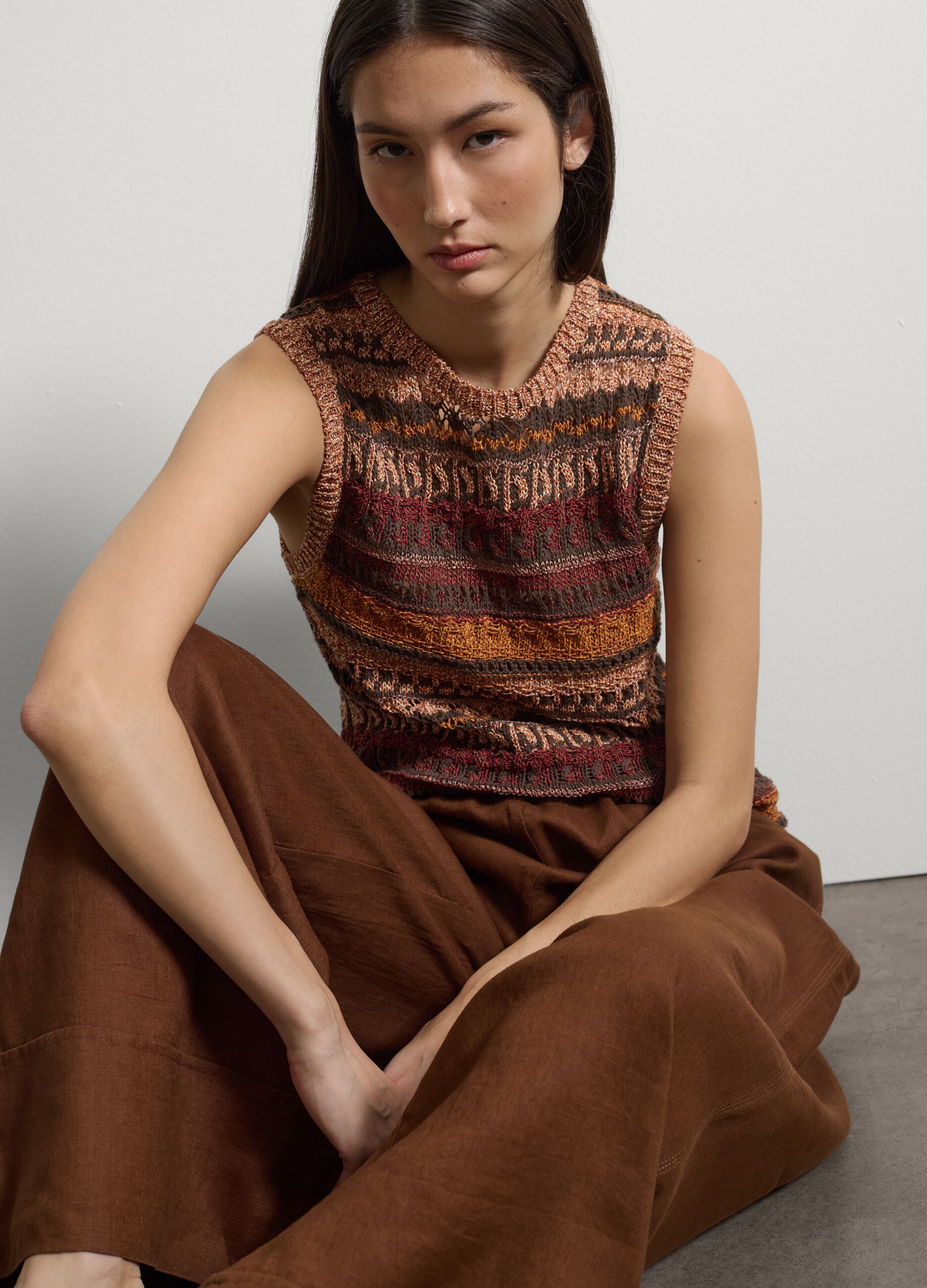 Çok renkli çizgili askılı bluz, rahat bir normal kesim için pamuk karışımından üretilmiştir. Geniş omuz ve normal kesim, pratik ve günlük bir görünüm sağlar. Örgü dokusu sofistike bir dokunuş katarken, hafif kumaş sıcak günlerde serin kalmanızı sağlar.