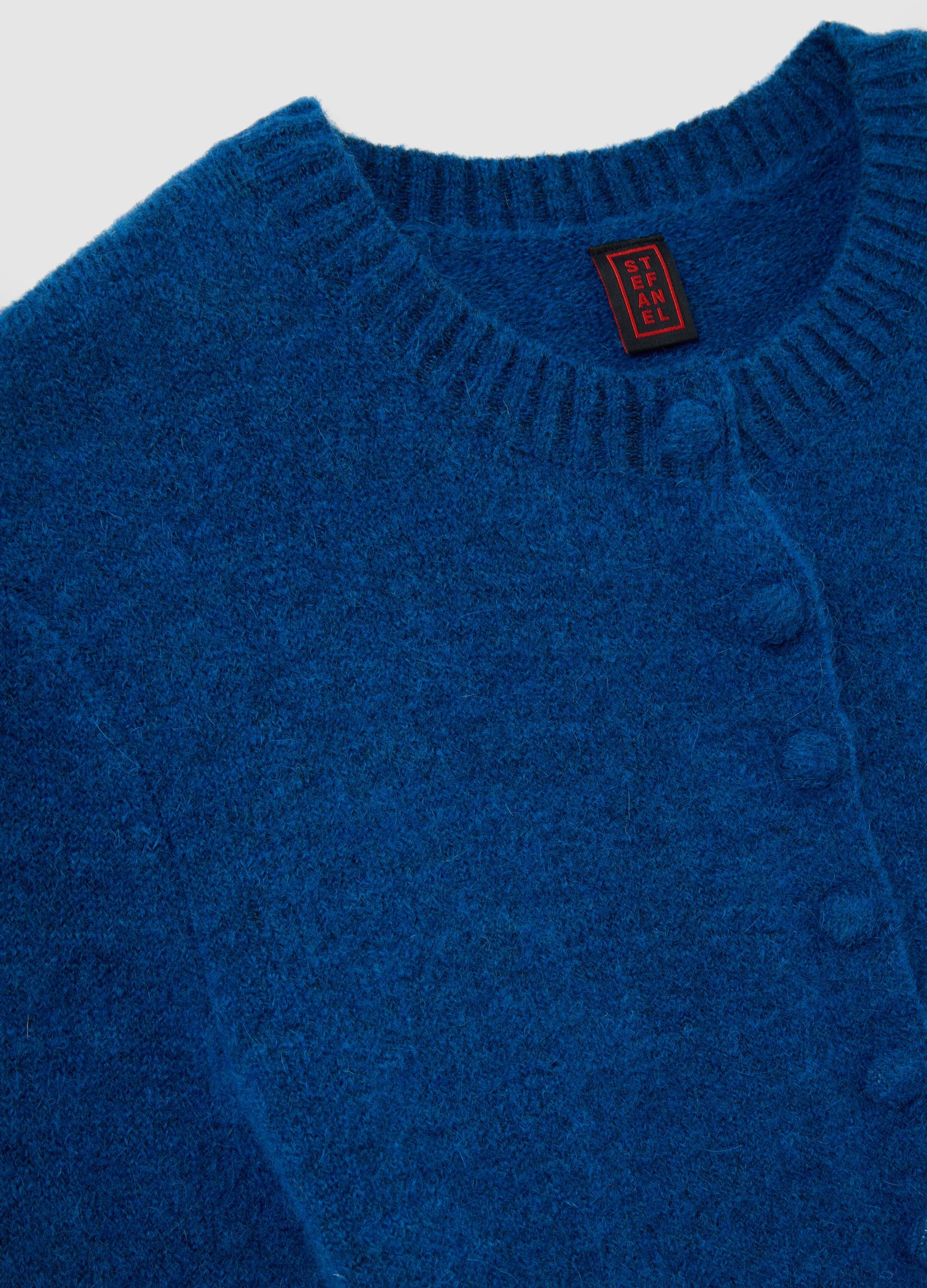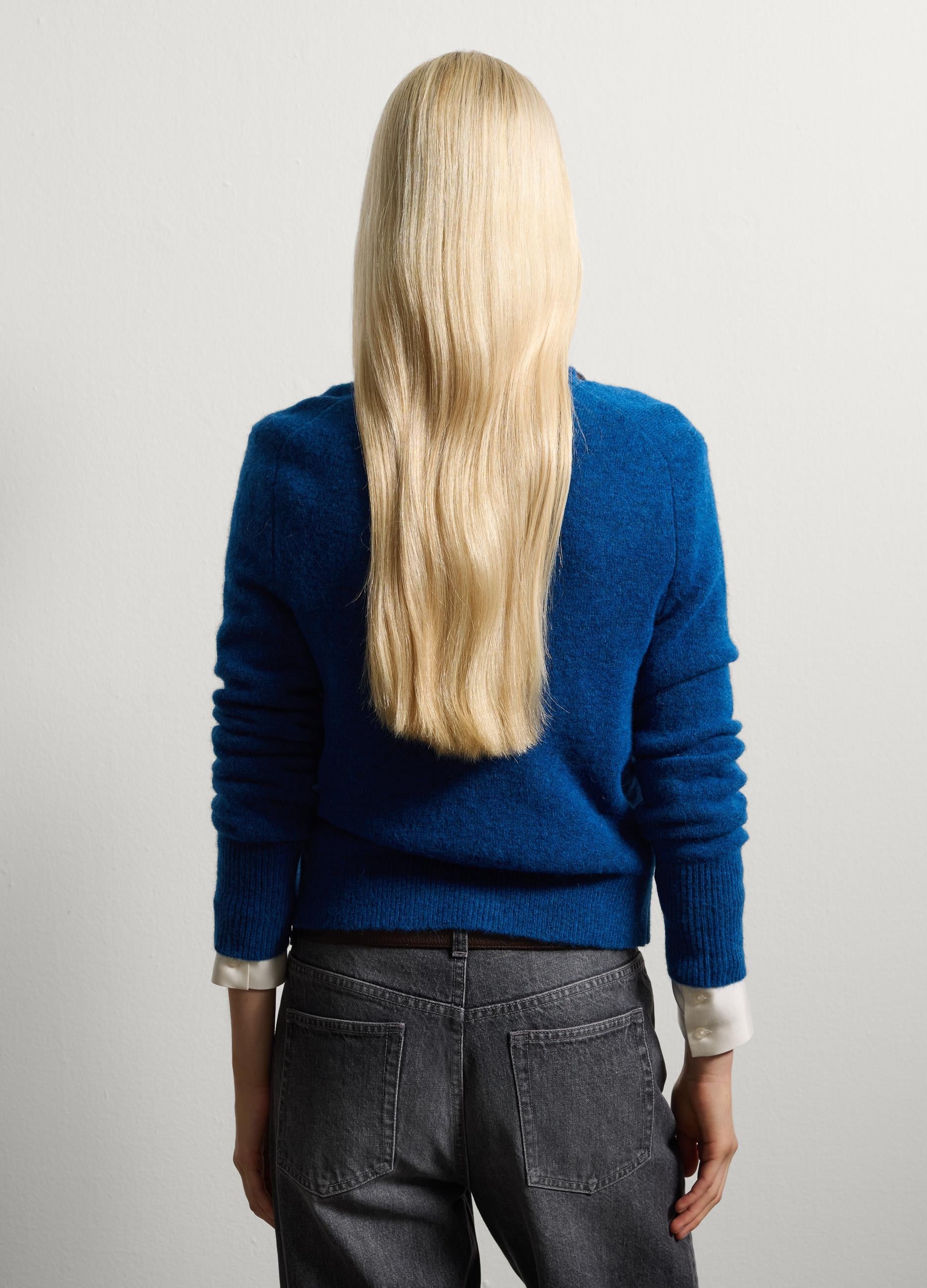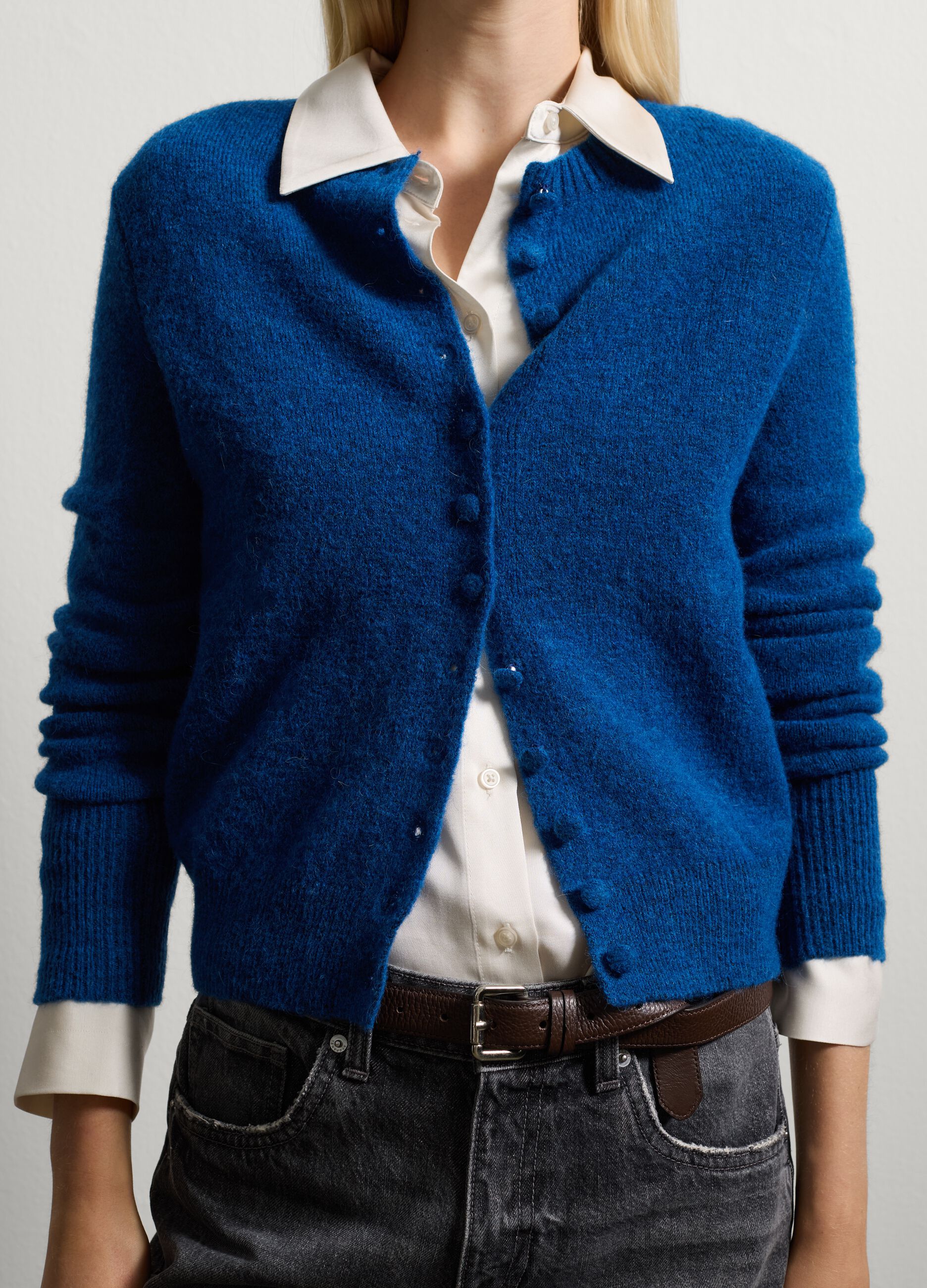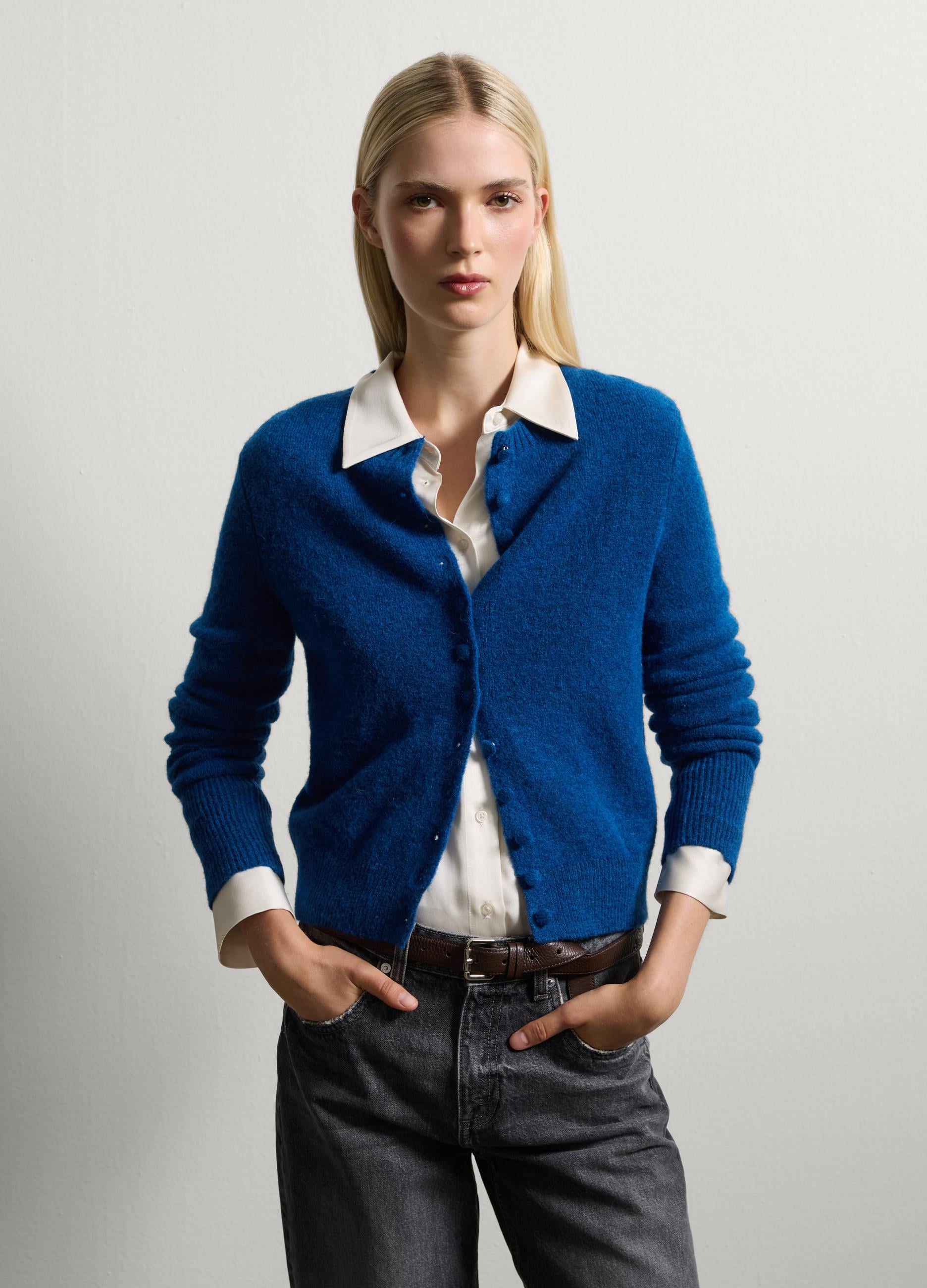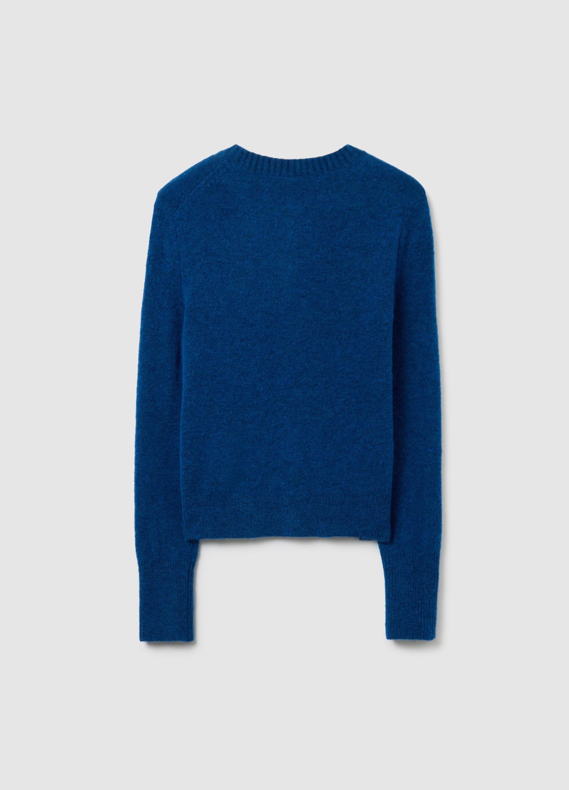 Mavi yün hırka, sonbahar/kış sezonu için olmazsa olmaz bir parça. Bu tasarım, yumuşak ve rahat bir silüetle sıcaklık ve konfor sağlıyor. Jarse örgü ve düğmeli yakalı Regular kesim, her duruma uygun klasik bir görünüm sunuyor.